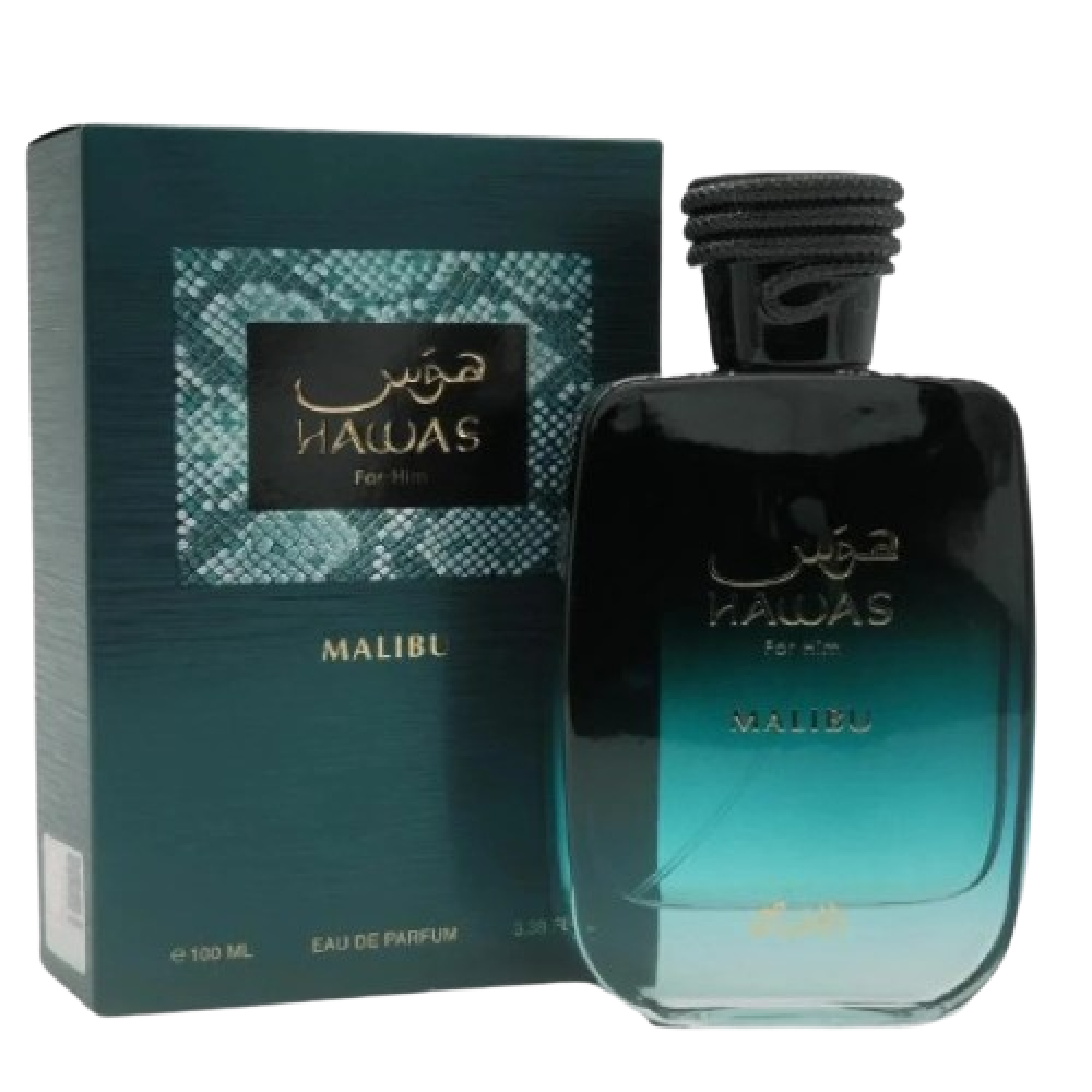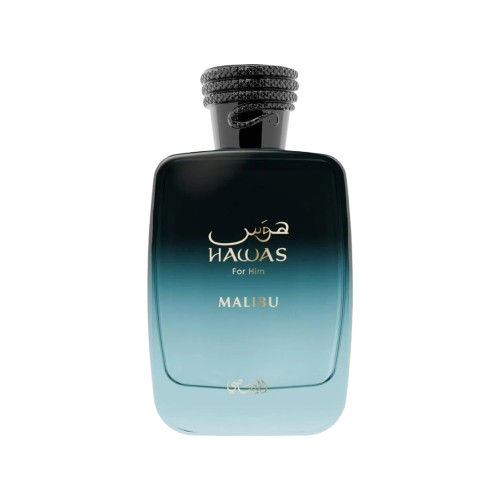 Rasasi Hawas Malibu هو رفيقك المثالي للأجواء الصيفية؛ مزيج منعش يربط بين البحر والشمس والفاكهة في زجاجة أنيقة.