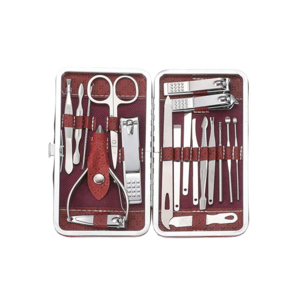 - 16 قطعة متنوعة: تتضمن قصافات، مقصات، أدوات تنظيف، مبردات، وأدوات متعددة الوظائف لتلبية جميع احتياجات العناية بالأظافر.