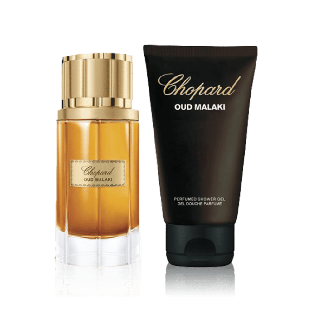 الوصف: مجموعة عطرية رجالية من Chopard تحتوي على عطر Oud Malaki أو دو برفيوم بحجم 80 مل مع جل استحمام معطر بحجم 150 مل. يجسد العطر القوة والفخامة مع نفحات عميقة من العود والتوابل، مما يعبر عن الأصالة والتميز.