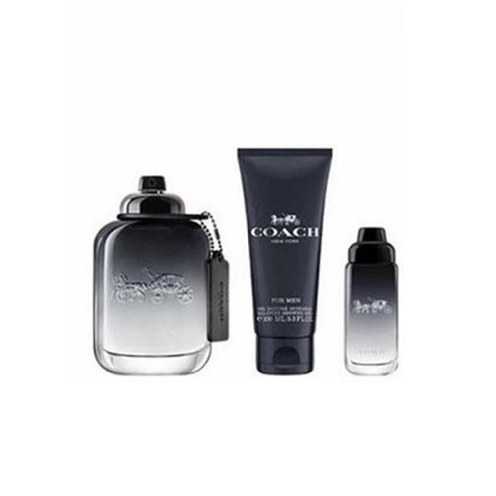 الوصف: مجموعة عطر COACH FOR MEN الرجالية، تشمل أو دو تواليت بحجم 100 مل، وأو دو تواليت صغير بحجم 15 مل، مع جل استحمام معطر بحجم 100 مل. تعكس هذه المجموعة الرجولة العصرية والثقة بالنفس، بمزيج من النفحات الخشبية والتوابل المنعشة التي تمنح شعورًا بالقوة والأناقة طوال اليوم.