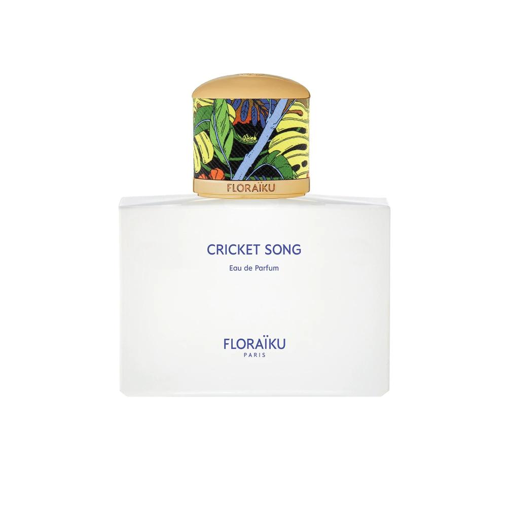 Immerse yourself in the moments of dusk and silence filled with the magic of nature with **Cricket Song Eau de Parfum** from **Floraïku**, a poetic fragrance that weaves between the warmth of night and the coolness of dawn, blending simplicity with elegance in a unisex formula inspired by the sounds of locusts under the moonlight.