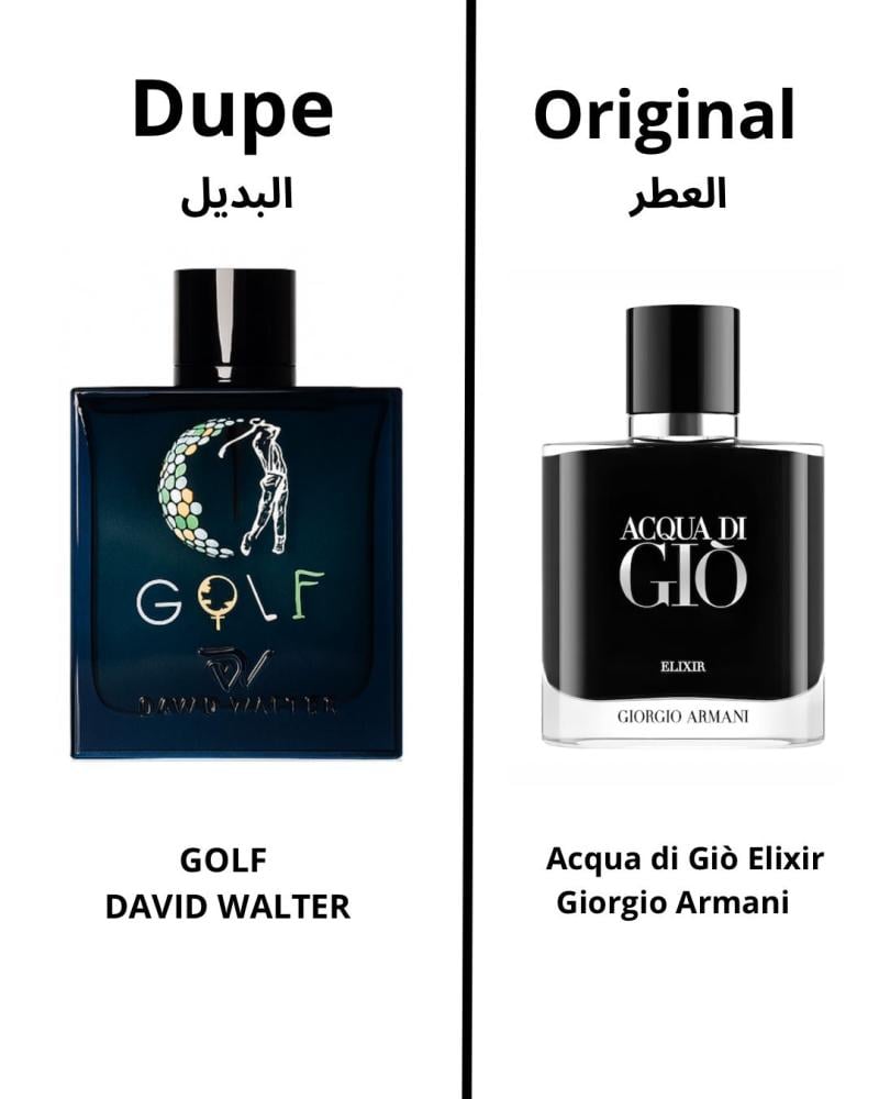 Golf by David Walter is a luxurious fragrance that offers a fragrance experience inspired by Armani L'Elixir , but with a warmer, more lingering touch. It opens with fresh spicy notes, a balanced floral-aromatic heart, and settles on a warm base of woods, amber, and vanilla for a powerful, unforgettable presence.