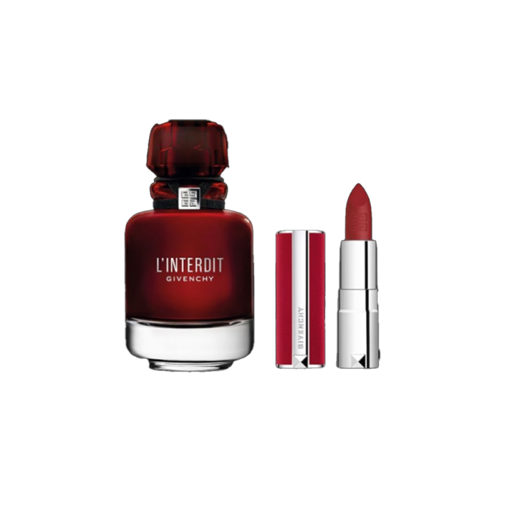 Enjoy luxurious elegance with the Givenchy L'Interdit set, which combines a 50ml L'Interdit Eau de Parfum and the stunning Givenchy lipstick. This perfect set offers a complete fragrance and beauty experience for the modern woman seeking distinction and attractiveness.