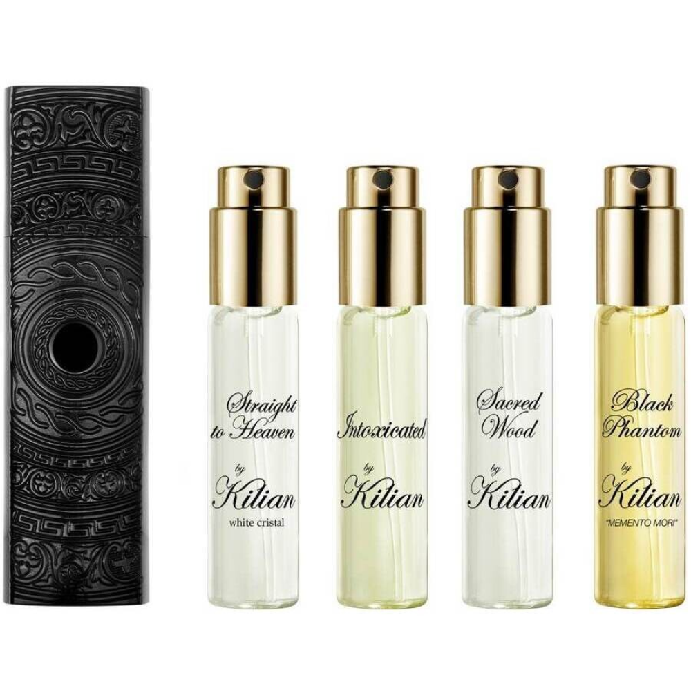 The Cellars Discovery Set by Kilian offers a luxurious experience for lovers of warm, woody fragrances. The set includes four 7.5ml bottles, plus an elegant refillable travel spray inspired by the design of Kilian's original bottles. This set features a fragrance composition that blends woody and oriental notes, creating a warm, sensual scent that lasts a long time.